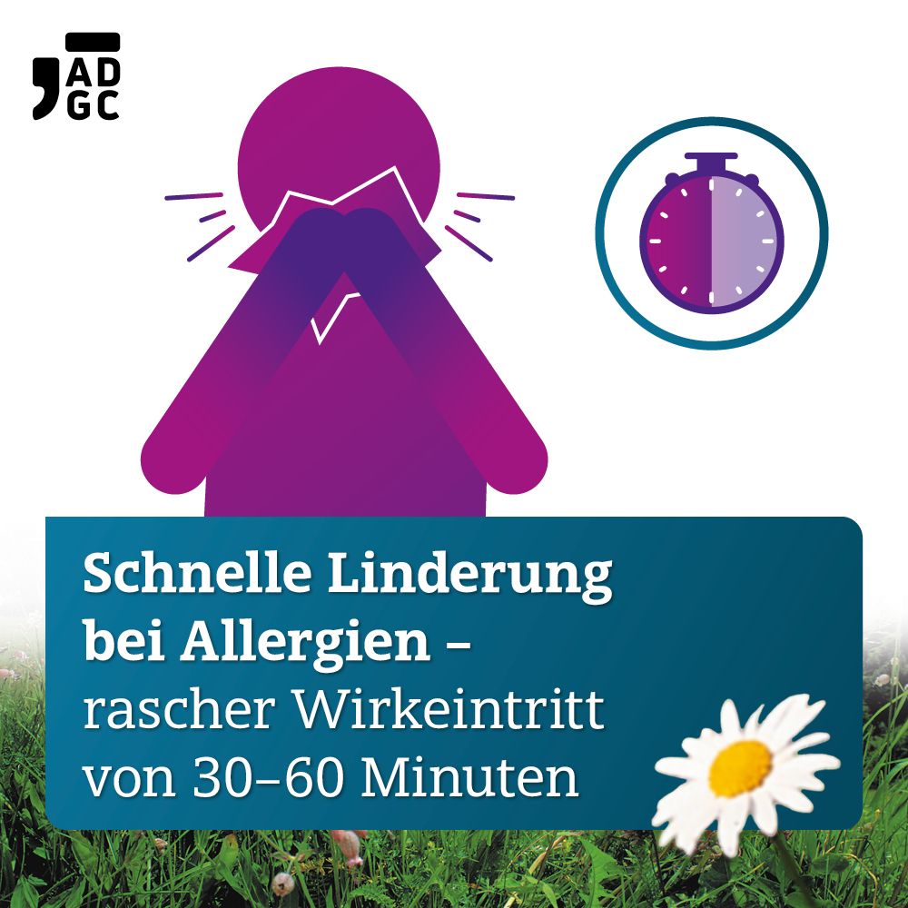 - Schnelle Linderung bei Allergien mit raschem Wirkeintritt von 30 - 60 Minuten