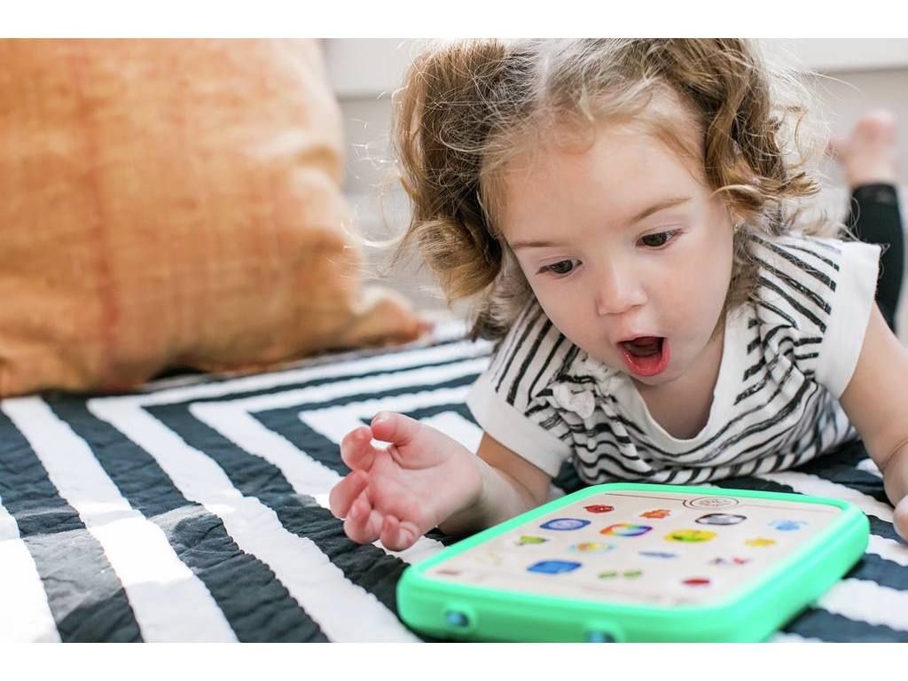 Das Baby Lerntablet mit Holzelementen spielt über 150 Töne ab. Zahlen, Buchstaben und Tiere begleiten Kinder bereits ab 6 Monaten beim Lernen der deutschen, italienischen und englischen Sprache sowie von Farben und Formen. Die innovativen Touch-Technologie bringt Magie ins Kinderzimmer.
