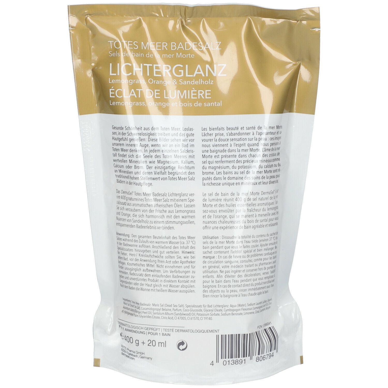 das Dermasel Totel Meer Badesalz Lichterglanz vereint 400 g naturreines Totes Meer Salz mit einem Spezielzusatz aus aromatischen ätherischen Ölen: