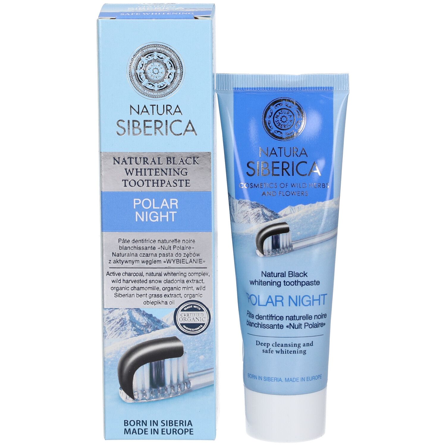 Die Natura Siberica Polar Night Whitening Zahnpasta 100 ml ist eine aufhellende Zahncreme mit sibirischen Kräutern für ein erfrischtes Gefühl. Der spezielle Natural Whitening - Komplex mit Aktivkohle glättet die Zahnschmelzflächen und hellt sie sanft auf. So können sich Verfärbungen schlechter festsetzen und die Zähne wirken dauerhaft heller. Das enthaltene Meersalz hilft außerdem dabei, das Wachstum von Bakterien zu hemmen und sibirische Kräuter erfrischen den Atem. Natura Siberica ist eine rein biologische Kosmetiklinie, welche wertvolle Wildkräuter, Beeren, Gräser und Pflanzen aus Sibirien und dem fernen Osten verwendet.