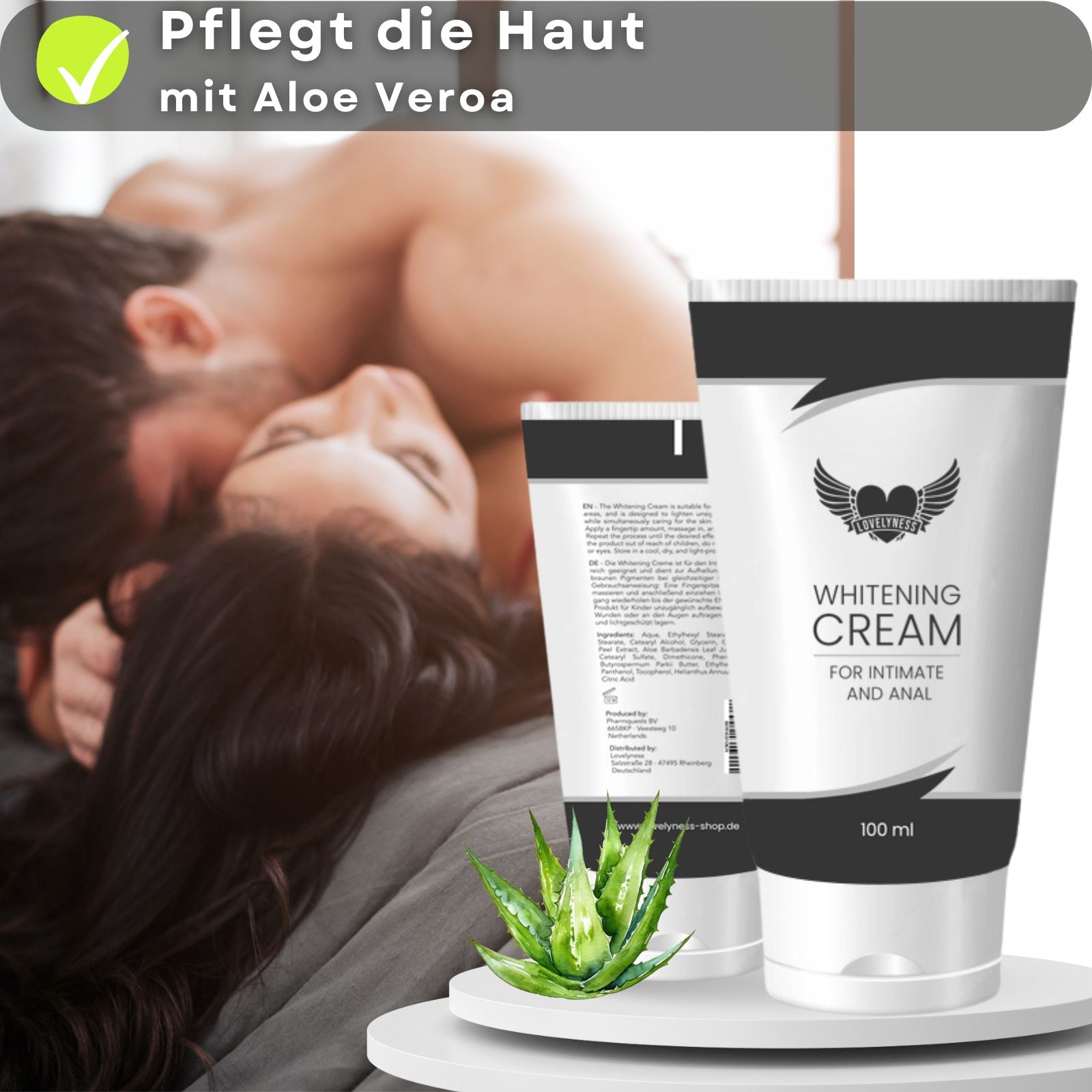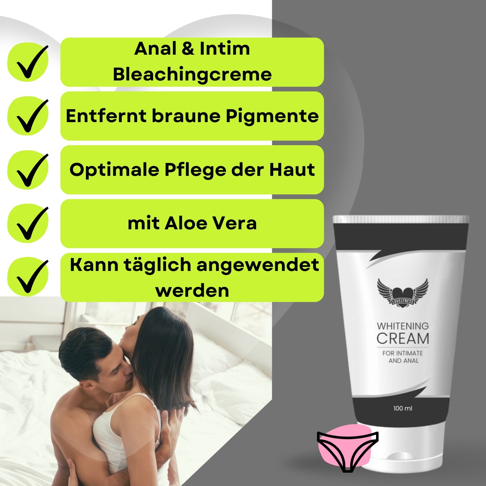 Die Aufhellung des Anus und vom Intimbereich ist ein aktueller Trend. Diese Whitening Creme ist eine Creme für empfindliche Haut, die speziell für das Weißen des Bereichs um den Anus und den Intimbereich sowie den Achseln herum entwickelt worden ist. Sie enthält ein spezielles Bleichmittel und fettende Inhaltsstoffe. Die Creme ist für empfindliche Haut geeignet.