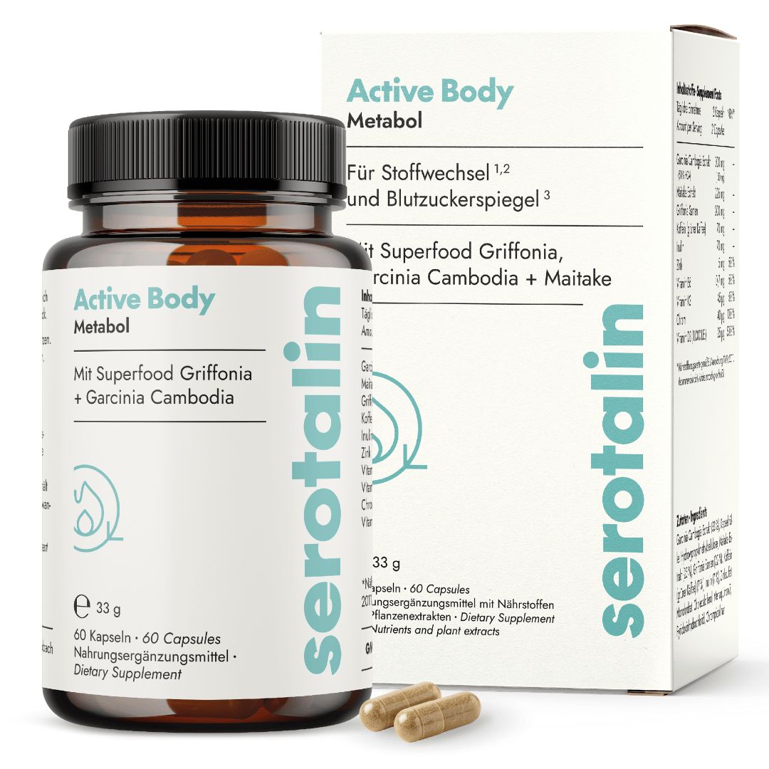 Serotalin Active Body Metabol ist eine hochwertige Ergänzung für deine tägliche Routine, wenn du deinen Stoffwechsel¹² und deinen Energiehaushalt³ unterstützen möchtest. Die Formel kombiniert sorgfältig ausgewählte Pflanzenextrakte wie Garcinia Cambogia, Maitake-Pilz, Griffonia-Samen und grünen Kaffeeextrakt – perfekt als Ergänzung zu einer ausgewogenen Ernährung¹²³.