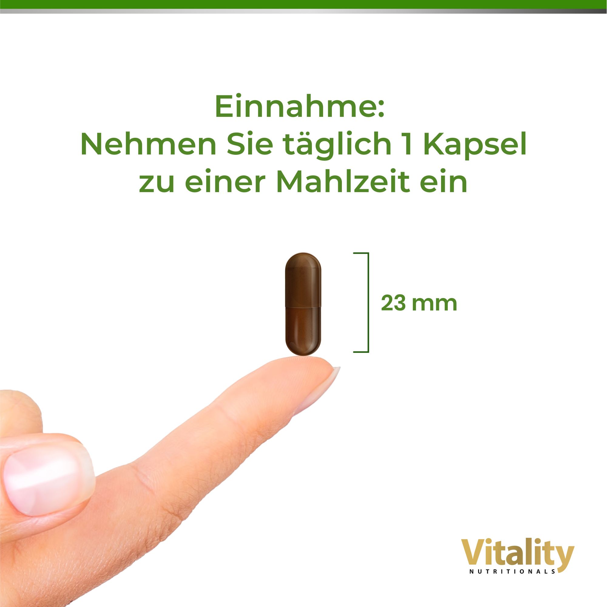 Die OPC Kapseln von Vitality Nutritionals enthalten pro Kapsel 300 mg Traubenkernextraxt, davon hochdosiertes OPC mit 150 mg pro Kapsel: Französischer Traubenkernextrakt wird in vierfach standardisierter Qualität verwendet, was einen hohen Gehalt an Oligomere Proanthocyanidine (OPC) garantiert.