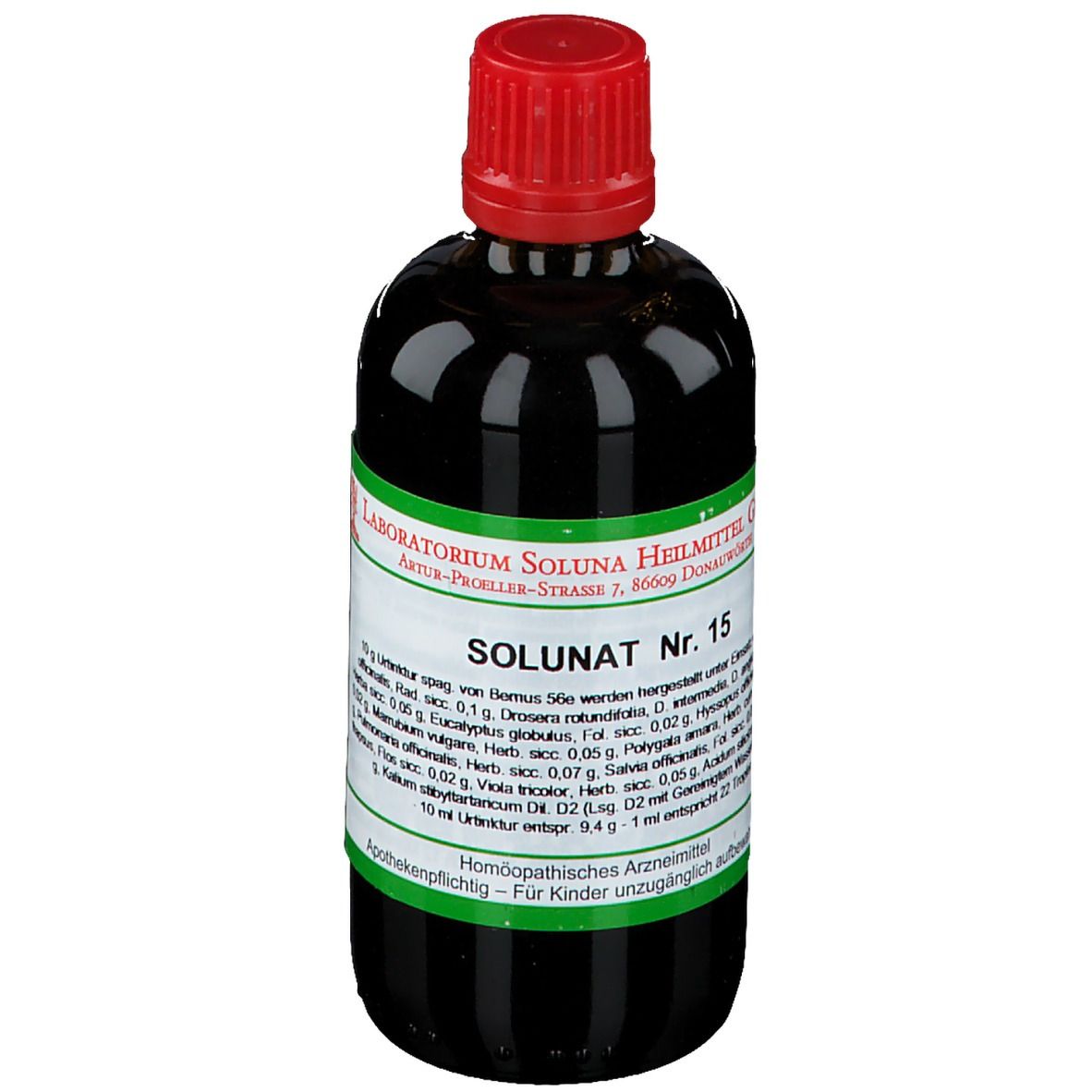 Pflichtangaben: Zusammensetzung: 10ml Urtiktur (entspr. 9,4g) enthalten: Althaea - Drosera - Eucalyptus - Hyssopus - Marrubium - Polygala amara - Pulmonaria - Salvia - Verbascum - Viola - Acidum silicicum - Kalium stibyltartaricum - Urtinktur spag. von Bernus 56e 10ml. 10g Urtinktur spag. von Bernus 56e werden hergestellt unter Einsatz von: Althaea officinalis, Rad. sicc. 0,1g, Drosera rotundifolia, D. intermedia, D. anglica, D. peltata, Herba sicc. 0,05g, Eucalyptus globulus, Fol. sicc. 0,02g, Hyssopus officinalis, Herb. sicc. 0,02g, Marrubium vulgare, Herb. sicc. 0,05g, Polygala amara, Herb. cum Rad. sicc. 0,05g, Pulmonaria officinalis, Herb. sicc. 0,07g, Salvia officinalis, Fol. sicc. 0,07g, Verbascum thapsus, Flos sicc. 0,02g, Viola tricolor, Herb. sicc. 0,05g, Acidum silicicum Dil. D6 0,022g, Kalium stibyltartaricum Dil. D2 [Lsg. D2 mit gereinigtem Wasser] 0,1g. 1ml entspricht 22 Tropfen. Anwendungsgebiete: Registriertes homöopathisches Arzneimittel, daher ohne die Angabe einer therapeutischen Indikation. Warnhinweis: Enthält 50,6 Vol.-% Alkohol.
