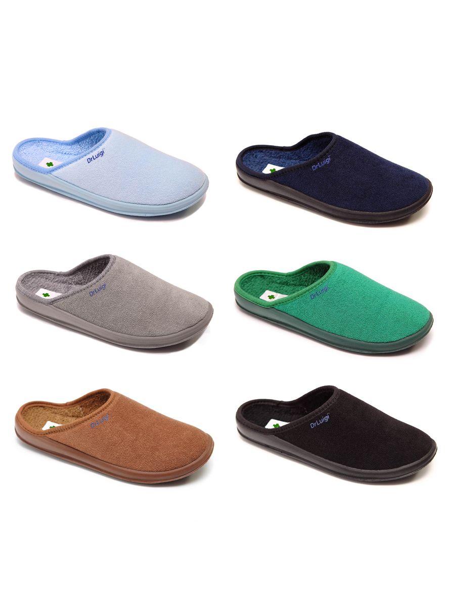 Dr.Luigi - Medizinische Hausschuhe - Gedächtnisschaum Schuhe Dr.Luigi - Medizinische Hausschuhe - Gedächtnisschaum Schuhe, Innenseite, Aussenseite Baumwolle waschbar, extra leicht Dieses Modell ist das populärste aller Dr.Luigi Produkte. Die Gedächtnisschaum Schuhe bestehen aus einer bequemen Polyuerthansohle und einer weichen Frotteeoberseite. Der leichte, flexible und äußerst komfortable Pantoffel ist ein ideales präventives Mittel für Personen mit genetischen Prädispositionen zur Entwicklung verschiedener Erkrankungen am Fuß oder am Unterschenkel. Die Weichheit und Ergonomie der Sohle ermöglicht eine Anpassung an die Form des Fußes und die Amortisation des Körpergewichts beim Gehen ("Schockabsorber"). Dr. Luigi Schuhe verbessern den peripheren Blutkreislauf und verringern den Druck auf die Wirbelsäule sowie Gelenke. Alle Materialien, die mit der Haut in Berührung kommen, sind 100% natürlich. Maschinenwaschbar bis 40°Celsius. Bitte unbedingt eine Nummer größer bestellen ! Merkmale/Komponenten 100% italienische Baumwolle Made in EU eine Nummer größer als normalerweise tragen normiert und werden für empfindliche Beine empfohlen um ihnen Erholung zu ermöglichen Außerordentlich leicht sowohl zu Hause als auch im Freien zu tragen leicht, flexibel und äußerst komfortabel Farbe: GRAU Technische Daten geeignet für Damen und Herren bequeme Polyurethansohle (besser als Schaumstoff) Oberseite: Frottee Maschinenwaschbar bis 40°C Gewicht: ca. 0,2 kg